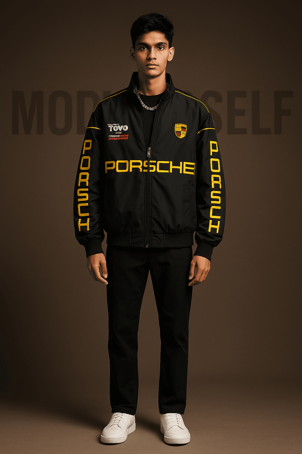 Inspired by the legendary Porsche 911, this jacket reflects timeless automotive design in wearable form. Aerodynamic paneling, sharp detailing, and precision embroidery capture the legacy of performance and innovation reimagined by ModYourself as a luxury streetwear statement.