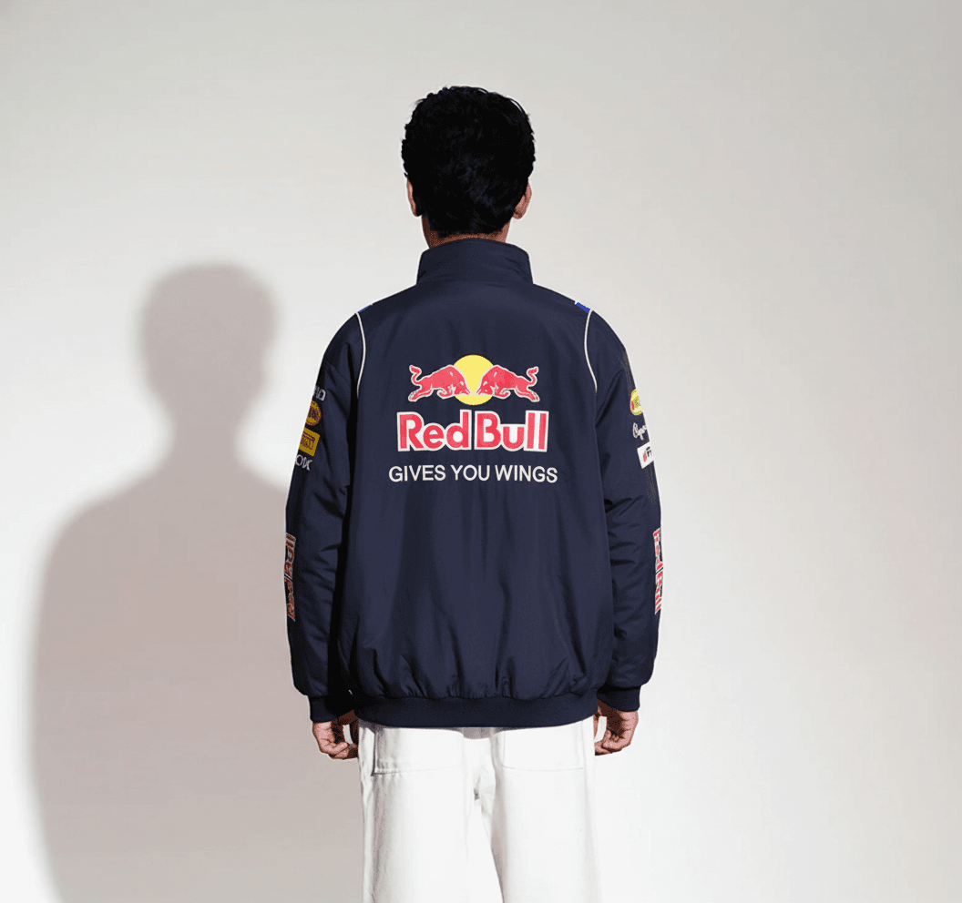 Inspired by racing liveries and high-energy performance culture, the Redline Energy Redbull Jacket blends bold visual cues with fine craftsmanship. Dynamic paneling, contrast piping, and precision embroidery evoke track intensity while preserving ModYourself signature premium aesthetic.